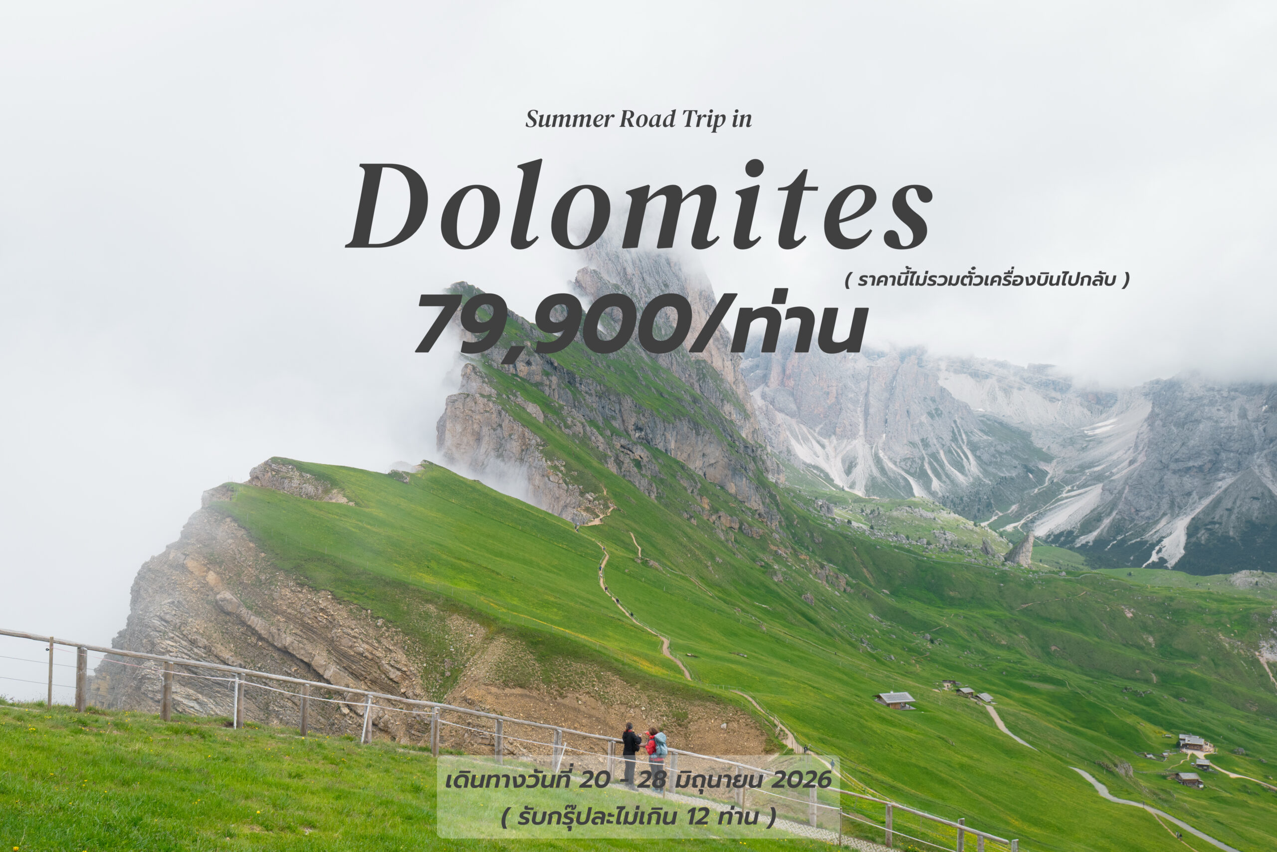 TRIP OVERVIEW St. Magdalena Lake Braies Seceda Lake Misurina Tre Cime di Lavaredo Alpe di Siusi Ramsau Malerwinkel Hallstatt กำหนดการเดินทาง วันที่ 20 มิถุนายน – 28 มิถุนายน 2026 การเดินทางจากประเทศไทย BKK – MUC Thai Airways ขาไป วันที่ 21 มิถุนายน 2026 เที่ยวบิน TG924 BKK – MUC เวลา 00:50 – 07:05 การเดินทางจากประเทศเยอรมนี TBS – BKK Thai Airways…