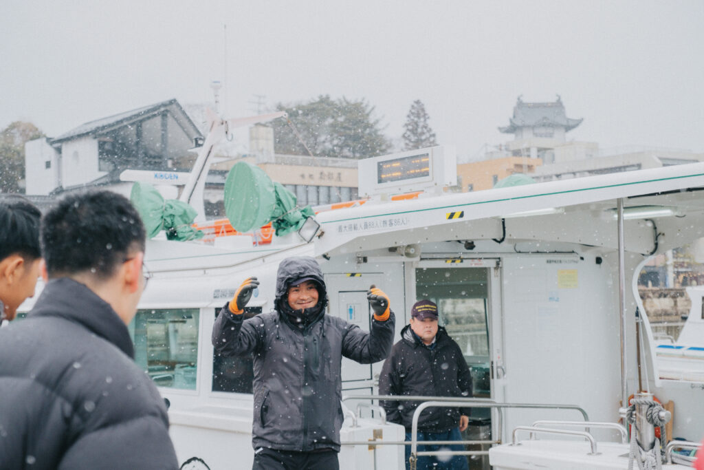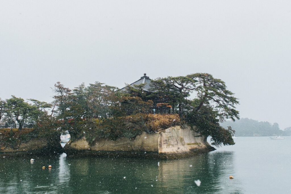 ช่วงบ่ายเราเดินทางมาถึจังหวัดมิยางิ และเริ่มต้นด้วยการไปชมความงามของ Matsushima Bay อ่าวที่ได้รับการยกย่องให้เป็นหนึ่งในสามวิวที่งดงามที่สุดของญี่ปุ่น ไฮไลต์คือเกาะเล็กกว่า 200 เกาะที่กระจายตัวอยู่กลางทะเล โดยเฉพาะช่วงฤดูหนาวที่เกาะเล็ก ๆ ถูกปกคลุมด้วยหิมะขาวตัดกับน้ำทะเลสีฟ้าเป็นภาพที่สวยงามสุด ๆ ส่วนใครมาเราขอแนะนำให้นั่งเรือชมอ่าวแบบสบาย ๆ รับลมหนาวไปพร้อมกับเก็บภาพวิวสุดอลังการกัน