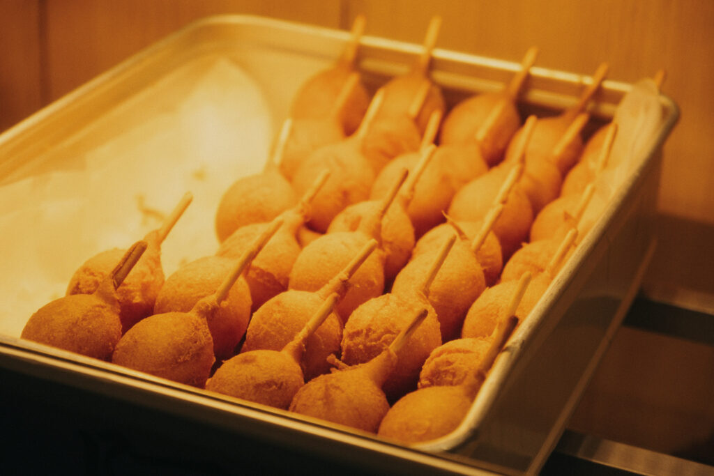 และสุดท้ายอย่าลืมแวะชิมเมนูขึ้นชื่อของเซนไดอย่าง Hyoutan-age ไส้ Kamaboko (ปลาแปรรูปแบบญี่ปุ่น) ชุบแป้งทอดกรอบ เสิร์ฟร้อน ๆ ราดซอสมะเขือเทศ กัดคำแรกคือได้ทั้งความกรอบนอกนุ่มใน และรสหอมหวานของปลา อร่อยเพลินจนอยากสั่งเพิ่มอีกไม้เลย ใครมาเดินที่ Clis Road ห้ามพลาดร้าน Abekama นี้เด็ดขาด