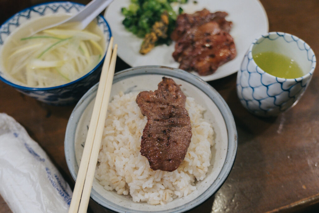 ช่วงบ่าย ๆ เรากลับเข้าเมืองเซนไดและไม่พลาดที่จะไปชิมเมนูชื่อดังที่รอคอยอย่างลิ้นวัวย่าง ที่ร้านดัง Aji Tasuke Honte เจ้าต้นตำรับลิ้นวัวย่างของเมืองเซนไดที่เราจะ เสิร์ฟลิ้นวัวชิ้นหนากำลังดี ย่างบนถ่านจนหอม กรอบนอกนุ่มใน เสิร์ฟคู่ข้าวบาร์เลย์ร้อน ๆ ซุปหางวัว และผักดองญี่ปุ่นเข้ากันสุด ๆ โดย Aji Tasuke Honte ถือเป็นตำนานลิ้นวัวย่างแห่งเซนได เปิดให้บริการมาตั้งแต่ปี 1948 หลังสงครามโลกครั้งที่สองโดยคุณ Keishiro Sano เจ้าของร้านรุ่นแรกเป็นผู้คิดค้นเมนู Gyutan-yaki (ลิ้นวัวย่าง) ขึ้นเป็นครั้งแรกในญี่ปุ่น จุดเริ่มต้นมาจากการอยากใช้วัตถุดิบทุกส่วนของวัวให้คุ้มค่า เขาจึงนำลิ้นวัวมาหั่นชิ้นพอดีคำ หมักซอสสูตรลับ แล้วนำไปย่างบนถ่านจนได้รสชาติหอมเฉพาะตัว ทำให้เมนูนี้โด่งดัง และกลายเป็นอาหารประจำเมืองเซนไดมาจนถึงทุกวันนี้ ปัจจุบันร้านยังคงรักษาวิธีการย่างและรสชาติแบบดั้งเดิม ใครมาเยือนเซนไดต้องห้ามพลาดร้านนี้เด็ดขาด