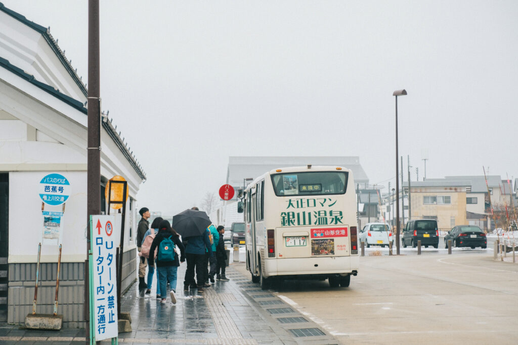 ส่วนการเดินทางไป Ginzan Onsen โดยรถโดยสารที่สะดวกที่สุด คือนั่งรถไฟ JR Ou Line จากสถานี Yamagata ไปลงสถานี Oishida จากนั้นต่อรถบัสชุมชน ตรงไปหมู่บ้าน Ginzan Onsen อีกประมาณ 35–40 นาที โดยรถบัสมีให้บริการวันละหลายรอบตั้งแต่เช้าถึงเย็น แต่ดูเวลาตามป้ายดี ๆ นะ