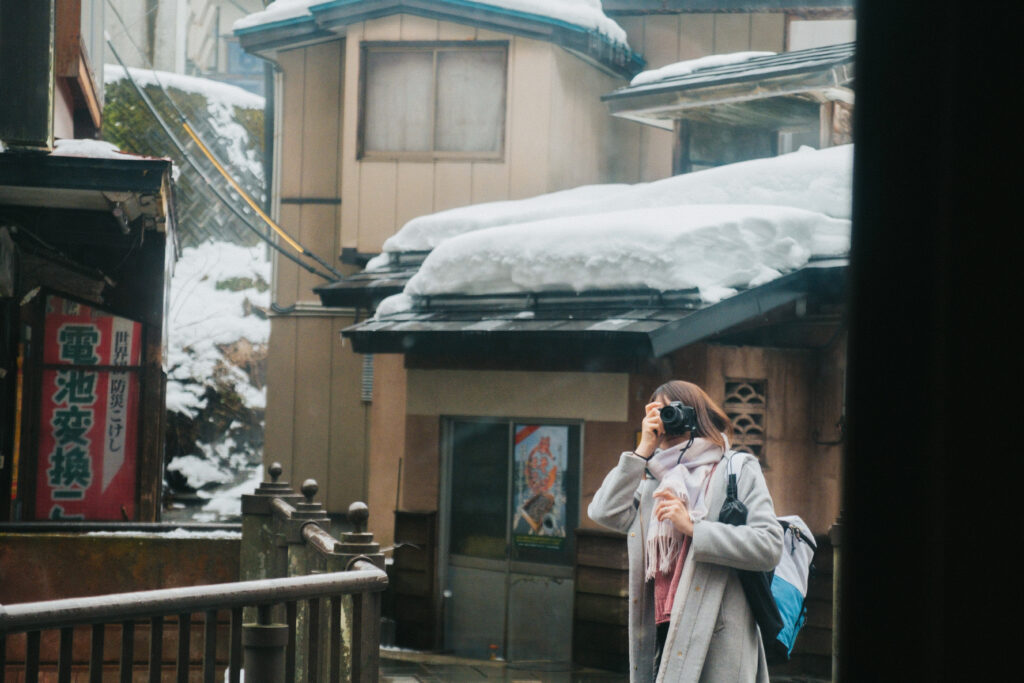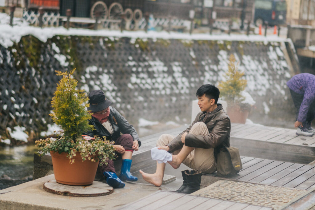 หมู่บ้านออนในหุบเขาแห่งยามากาตะที่มีบ้านไม้สไตล์โบราณเรียงรายสองฝั่งลำธาร มีสะพานไม้เล็ก ๆ และโคมไฟสุดแสนโรแมนติก ยิ่งช่วงหิมะตกทั้งหมู่บ้านจะถูกปกคลุมด้วยสีขาวละมุน บรรยากาศอบอุ่นจนบอกไม่ถูกเลย พวกเราใช้เวลาที่นี่แบบช้า ๆ เดินเล่นชิล ๆ ถ่ายรูปเพลิน ๆ ก่อนจะมาแวะไฮไลต์ที่ทำให้ที่นี่ฟินกว่าคือ บ่อแช่เท้าริมลำธาร ที่เปิดให้แช่ฟรี นั่งจุ่มเท้าในน้ำอุ่นท่ามกลางอากาศหนาว ๆ มันเป็นอะไรที่ดีต่อใจพวกเราสุด ๆ แล้ว