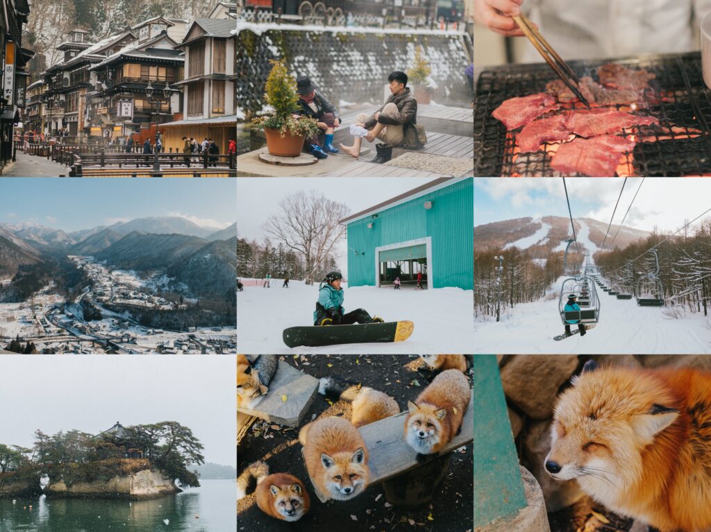 หน้าหนาวปีนี้เราขอชวนทุกคนเก็บกระเป๋า เตรียมโค้ทตัวหนา รองเท้าบูทคู่โปรด แล้วบินไปเก็บโมเมนต์หิมะฟูๆ กันที่โทโฮคุ เที่ยว 3 จังหวัดสุดฮอตอย่างมิยางิ ยามากาตะ และอิวาเตะ แบบ 5 วันเต็ม เริ่มต้นด้วยการเล่นสโนบอร์ดกลางหิมะสุดมัน ตามรอยที่เที่ยวสุด Unseen ที่มีกลิ่นอายความเป็นญี่ปุ่นแท้ ๆ ที่ Ginzan Onsen แวะไปเจอสุนัขจิ้งจอกตัวน้อยสุดน่ารักที่ Zao Fox Village และปล่อยใจจอย ๆ กับเมืองที่แสนสงบสุขที่เซนไดพร้อมปิดท้ายชิมลิ้นวัวย่างเจ้าดังแบบฟิน ๆ