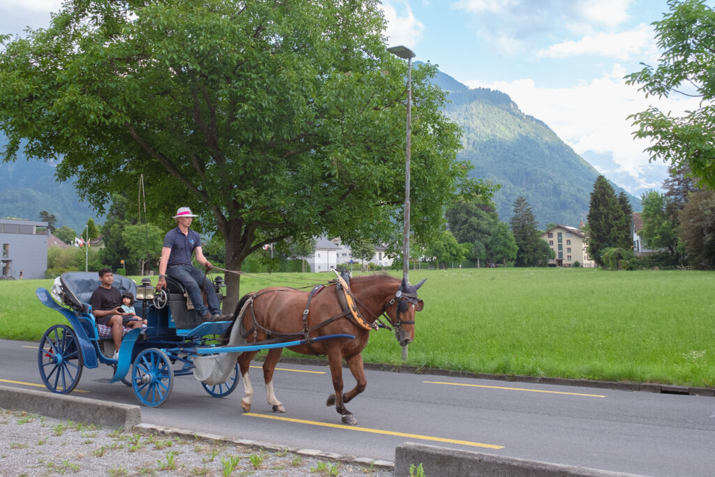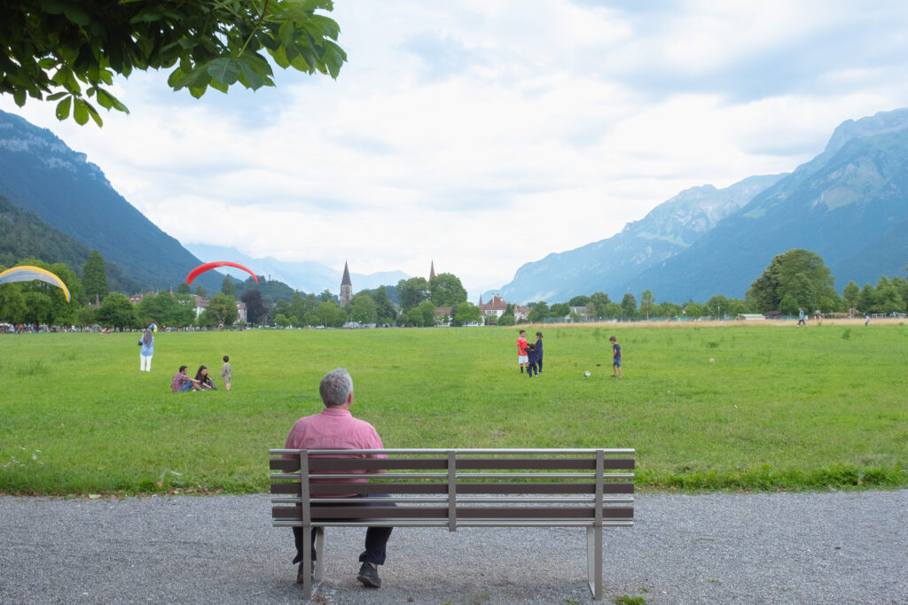 หลังจากนั่งรถไฟจากสนามบินมายังที่พักหลักของเราในทริปนี้ ก็ขอออกไปเดินเล่นชิค ๆ ในตัวเมือง Interlaken หมู่บ้านกลางหุบเขาที่คั่นระหว่างทะเลสาบสองฝั่งอย่าง Lake Thun และ Lake Brienz แม้จะเป็นเมืองหลักของนักท่องเที่ยว แต่ก็ไม่ได้วุ่นวายเลยยิ่งช่วงเย็นแบบนี้ อากาศกำลังดี ฟ้าเริ่มเปลี่ยนสี เสียงนกร้องเบา ๆ ผสมกับเสียงน้ำในคลองที่ไหลผ่านกลางเมือง บรรยากาศคือเหมาะแก่การสั่งเจลาโต้จากร้านเล็ก ๆ น่ารักในย่านใจกลางเมืองอย่าง Gelateria Goldswil ที่สุด แนะนำให้หาที่นั่งแถว Höhematte Park สวนสาธารณะกลางเมืองที่มองเห็นยอด Jungfrau ที่นี่ช่วงเย็น ๆ คือ Vibes ดีม๊ากก