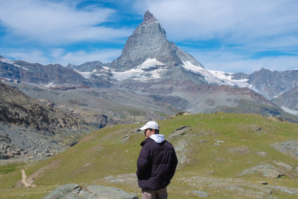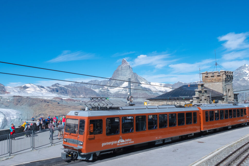 หลังจากเดินเล่นในเมืองจนพอใจ เราก็ไม่พลาดที่จะขึ้นรถไฟสาย Gornergrat Bahn ไปยังจุดชมวิวระดับโลกที่ Gornergrat ที่ความสูงกว่า 3,000 เมตรเหนือระดับน้ำทะเล รถไฟไต่ขึ้นไปแบบค่อยเป็นค่อยไป แต่ทุกนาทีก็เต็มไปด้วยวิวสวยสะกดตา จากป่าสนเขียว ๆ ค่อย ๆ เปลี่ยนเป็นลานหิน ธารน้ำแข็ง และภูเขาหิมะที่หยุดมองไม่ได้เลย และเมื่อเราถึงยอดวิวตรงหน้าคือ Matterhorn ที่ตั้งตระหง่านอย่างสง่างามพร้อมวิวรอบด้านที่เป็นแนวเทือกเขาแอลป์ อยากบอกว่าที่นี่เป็นภาพในฝันก็คงไม่เกินจริงเลย