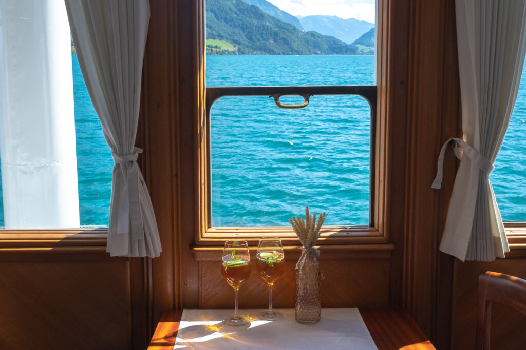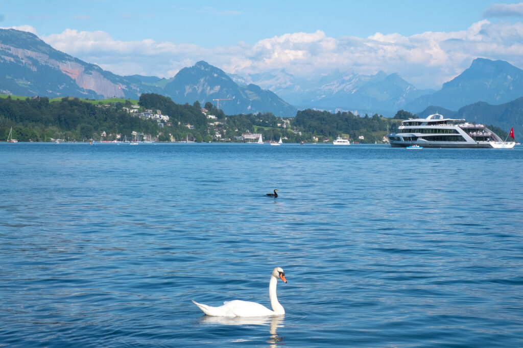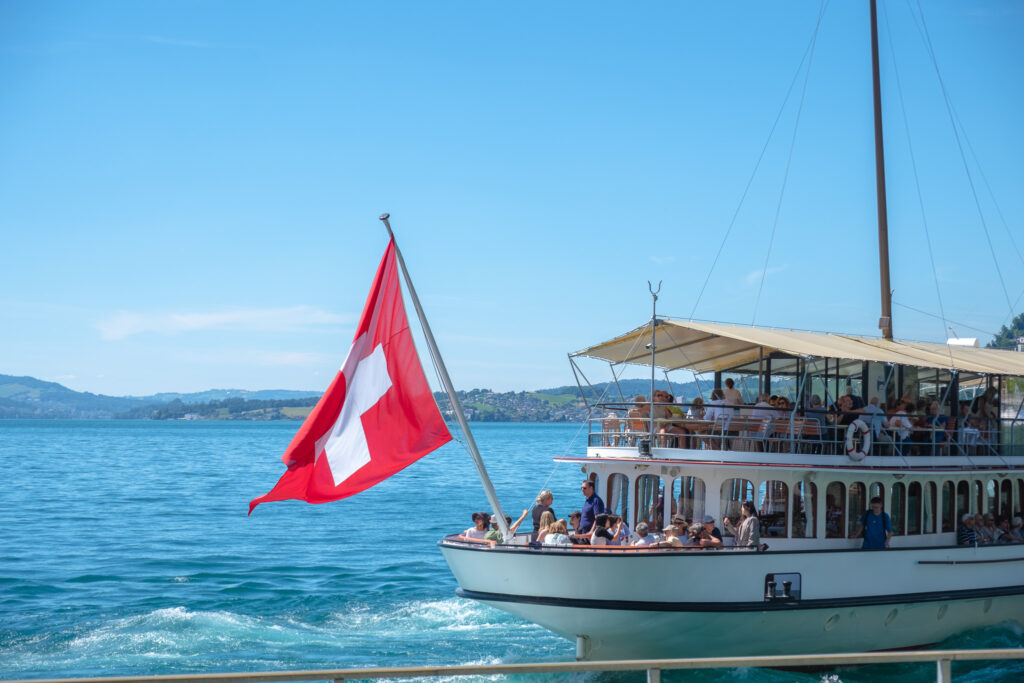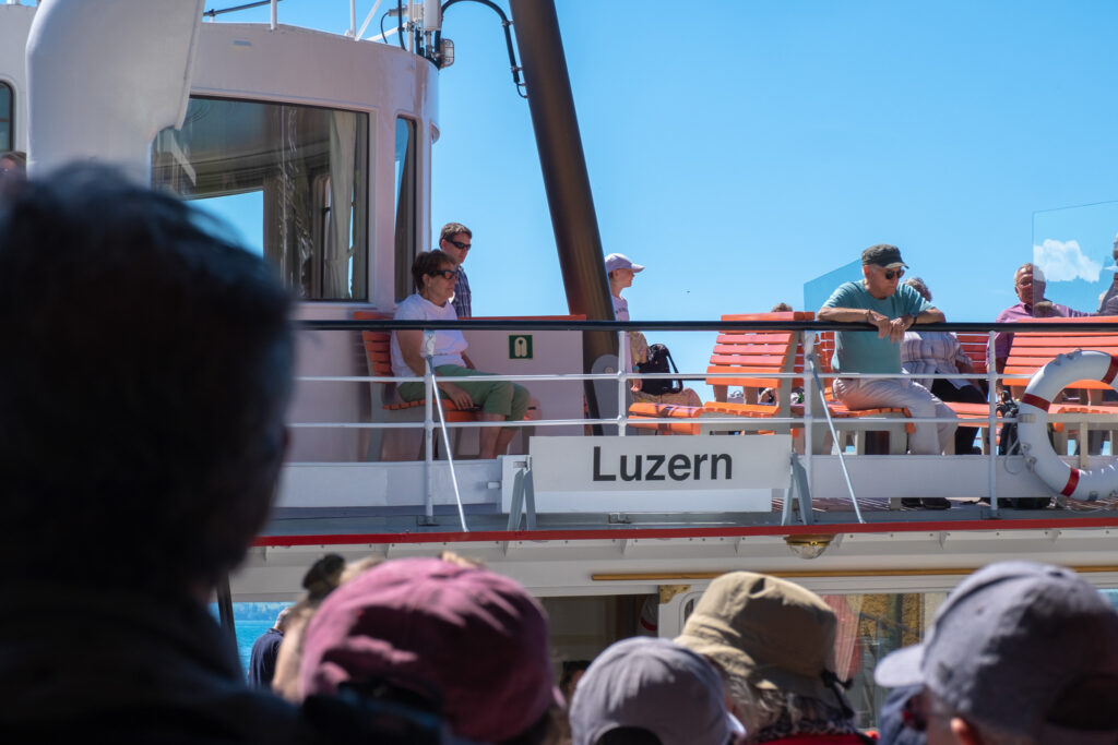 ปิดท้ายวันด้วยการปล่อยใจจอย ๆ ด้วยการขึ้นเรือ Lake Lucerne Cruise เรือล่องไปช้า ๆ บนผิวน้ำสีฟ้าที่มาพร้อมกับบรรยากาศรอบตัวเต็มไปด้วยความชิลล์ ได้บ้านไม้สไตล์สวิสตั้งเรียงรายริมฝั่ง มีท่าเรือเล็ก ๆ น่ารักที่เห็นคนพายเรือเล่นบ้าง หรือไม่ก็นั่งปิกนิกริมทะเลสาบแบบสบาย ๆ โดยจุดที่เรือล่องผ่านมีหลายวิวสวย ๆ ทั้ง Weggis, Vitznau และ Beckenried ที่เรียงรายไปด้วยภูเขาเขียวขจี ทุ่งหญ้า และหมู่บ้านเล็ก ๆ โดยเส้นทางนี้ไม่ต้องมีอะไรมาก แค่ได้นั่งชิลล์ ๆ บนดาดฟ้าเรือ จิบกาแฟเบา ๆ มองวิวที่เปลี่ยนไปเรื่อย ๆ ถือว่าเป็นอีกหนึ่งวันที่ได้รีแล็กซ์สุด ๆ เลย