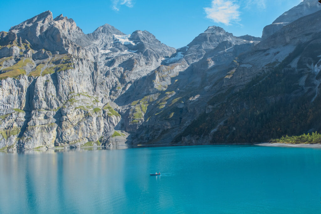 เช้าวันใหม่เราออกเดินทางจาก Interlaken ไปยังหมู่บ้าน Kandersteg แล้วต่อกระเช้าขึ้นเขาเพื่อไปยัง Oeschinensee ทะเลสาบแห่งสวรรค์ ที่ซ่อนตัวอยู่ท่ามกลางเทือกเขาสูงใหญ่ของ Bernese Oberland โดยการเดินทางไปที่นี่ใช้เวลาไม่นานก็ถึงสถานีบนเขา จากนั้นเดินเท้าต่ออีกประมาณ 20–30 นาที ผ่านวิวป่าสนและทุ่งหญ้าอันเขียวขจี เอาจริงแค่เริ่มต้นก็รู้เลยว่ามันว้าวแล้ว แต่หลังจากเดินพ้นมุมโค้งสุดท้าย ภาพตรงหน้าคือวิว Oeschinensee ทะเลสาบสีฟ้าเทอร์ควอยซ์ถูกโอบล้อมด้วยภูเขาหิมะตัดกับทุ่งหญ้าสีเขียวสดที่สวยแบบยอ.ยักษ์ล้านตัว มีวัวเดินเล็มหญ้าเบา ๆ เป็นแบ็คกราวด์ และนักท่องเที่ยวนั่ปิกนิกบนพื้นหญ้า เล่นเรือ ถ่ายรูป รวมถึงว่ายน้ำเล่นกัน เป็น Vibes Summer ที่ชอบที่สุดในทริปนี้แล้ว