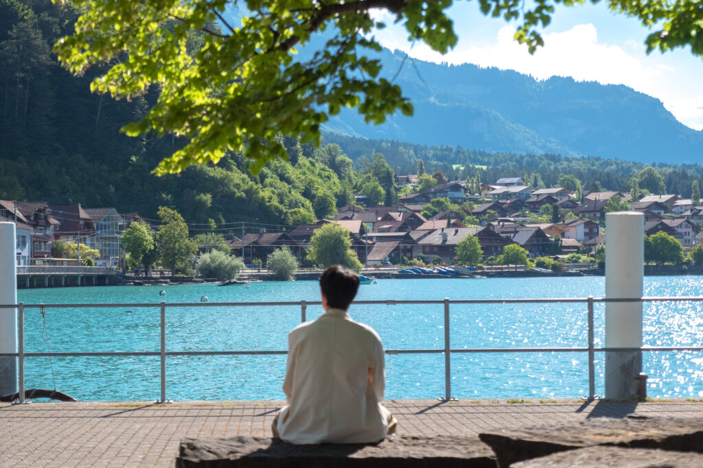หลังจากลงจากยอดเขาพวกเราก็ขอเปลี่ยนฟิลจากนั่งรถไฟไปนั่งเรือบ้าง และใกล้ ๆ ก็มีหนึ่งในท่าเรือสุดคลาสสิกของเมือง Brienz โดยการล่องเรือในทะเลสาบ Lake Brienz ที่มีวิวทะเลสาบสีฟ้าใสแบบเทอร์ควอยซ์ล้อมรอบด้วยภูเขาสูง และหมู่บ้านเรียบชายฝั่ง แนะนำให้ขึ้นมานั่งบนดาดฟ้าเรือ บรรยากาศมันดีม๊ากทุกคน