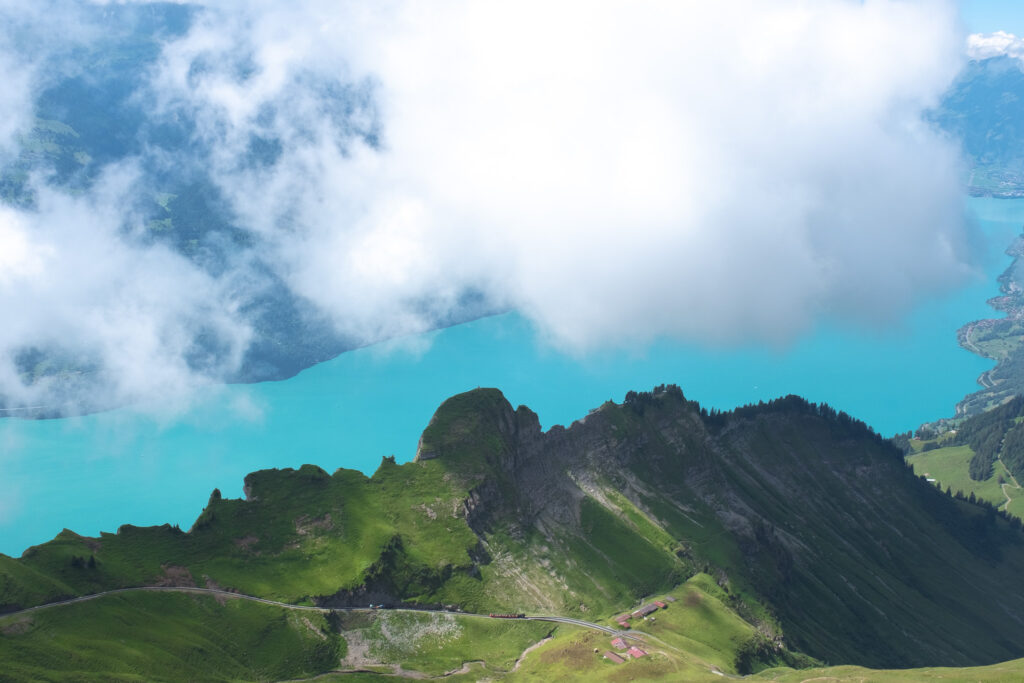 เมื่อวานขึ้นมายังด้านบนของ Brienzer Rothorn เราจะได้เห็นวิวเทือกเขาแอลป์ที่เรียงตัวเป็นชั้น ๆ สุดสายตา พื้นหญ้าบนยอดเขาเขียวขจี สลับกับดอกไม้ป่าเล็ก ๆ ที่ขึ้นแซมตามทางเดินแถมยังได้เห็นวิวทะเลสาบ Brienz ด้านล่างสีฟ้าเทอร์ควอยซ์ที่ตัดกับเขาเขียว และท้องฟ้าได้แบบลงตัว ยิ่งถ้าโชคดีฟ้าเปิดเราจะเห็นเทือกเขา Eiger, Mönch และ Jungfrau อยู่ลิบ ๆ อีกด้วย