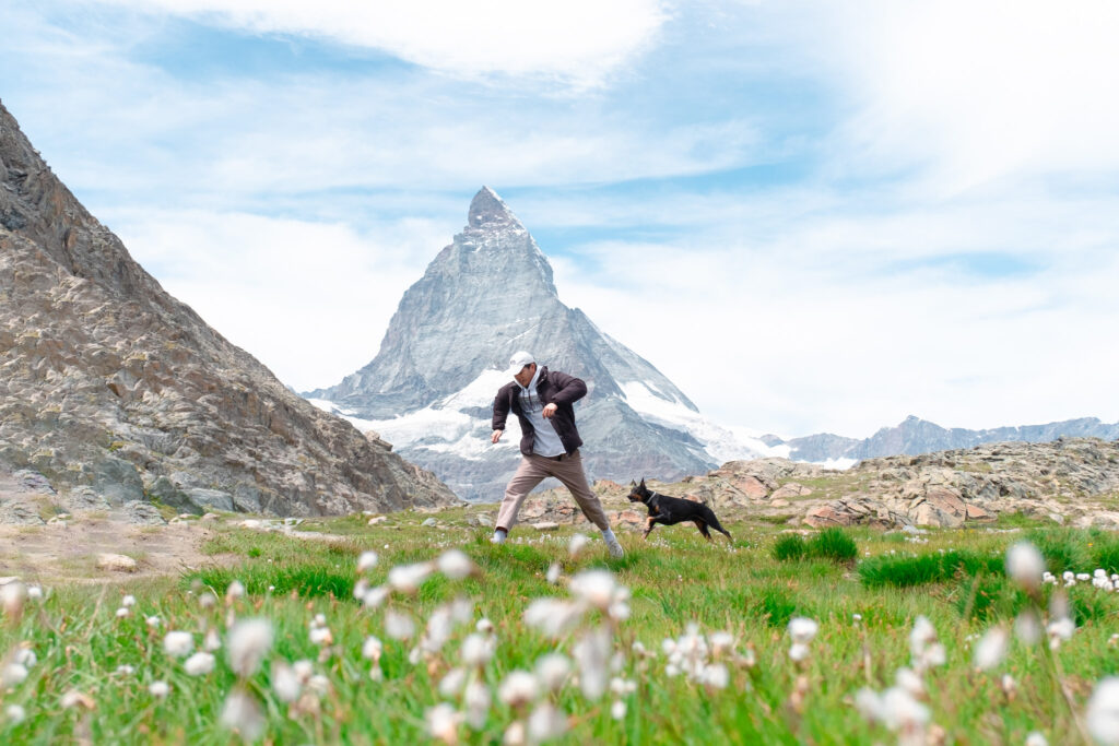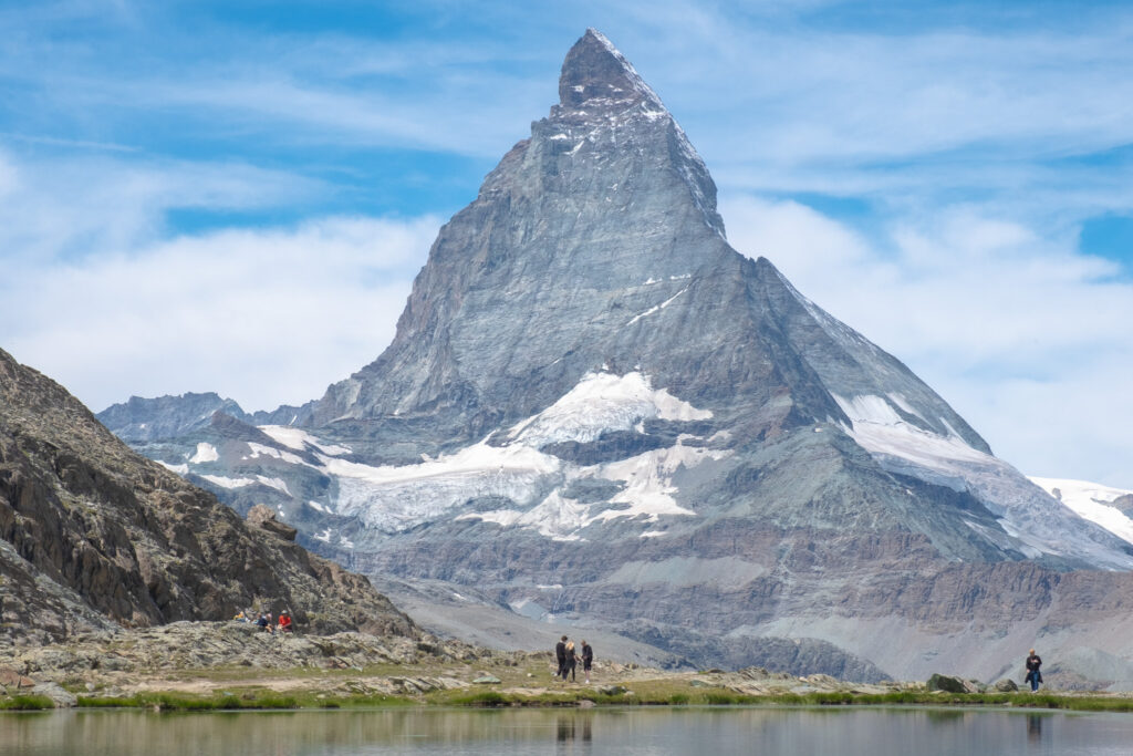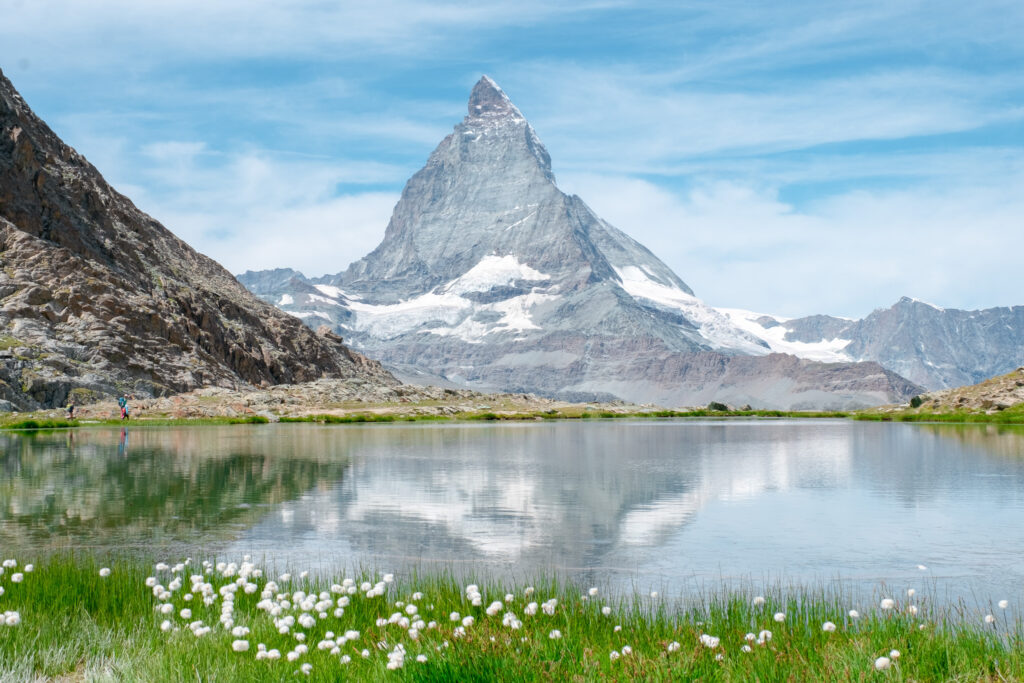 ระหว่างทางขาลงจาก Gornergrat เราแวะลงที่สถานี Rotenboden เพื่อเดินต่ออีกไม่ไกลไปยัง Riffelsee ทะเลสาบเล็ก ๆ ที่มีวิว Matterhorn ตั้งตระหง่านอยู่เบื้องหลัง และเงาของมันสะท้อนอยู่บนผิวน้ำของทะเลสาบนิ่ง ๆ ที่สวยงามจนเราใช้เวลานั่งชิลล์ ๆ อยู่ที่นี่นานมาก และช่วงซัมเมอร์แบบนี้ฟ้าเปิดเกือบทั้งวัน น้ำในทะเลสาบใสจนเห็นพื้นกรวด และรอบ ๆ เต็มไปด้วยดอกไม้ขึ้นตามซอกหิน ยิ่งเพิ่มชีวิตชีวาให้กับภาพที่สวยอยู่แล้วให้ดูมีชีวิตยิ่งขึ้น เป็นอีกหนึ่งโมเมนต์ที่อยากนั่งอยู่ที่นี่นาน ๆ เลย