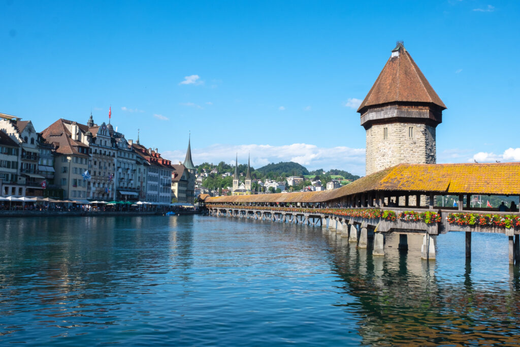 และจุดแรกที่ต้องแวะเลยเมื่อมาเมืองนี้คือ Chapel Bridge สะพานไม้เก่าแก่ที่เป็นสัญลักษณ์ของเมือง โดนตัวสะพานจะเป็นไม้สุดคลาสสิกที่มา พร้อมกับภาพวาดโบราณที่ถูกเก็บรักษาไว้บนเพดานสะพาน แถมใกล้ ๆ กันยังมีOld Town ที่เต็มไปด้วยตึกสีพาสเทลลวดลายศิลปะยุคเรอเนซองส์ ร้านกาแฟริมถนนที่มีโต๊ะเล็ก ๆ ตั้งเรียงรายอยู่ริมน้ำเต็มไปหมด