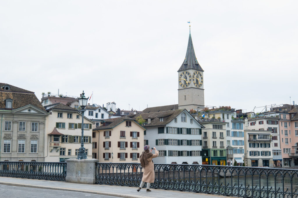 หลังจากใช้วันทั้งวันเดินบนเขา และสัมผัสธรรมชาติที่ Wildkirchli พอเย็นเราก็มาถึง Zurich เมืองใหญ่ที่เต็มไปด้วยเสน่ห์ในอีกแบบ หลังเดินออกจากสถานีรถไฟกลาง (HB) ก็จะได้กลิ่นของเมืองที่ผสมกันระหว่างความเก่าแก่ของอาคารหิน กับความทันสมัยของร้านและคาเฟ่ริมทางได้ลงตัว ยิ่งช่วงเย็นแถว Limmat River ที่ไหลผ่านกลางเมือง Vibes ดีมาก มุมถ่ายรูประหว่าง Grossmünster และ Fraumünster ก็สวยสุด ๆ