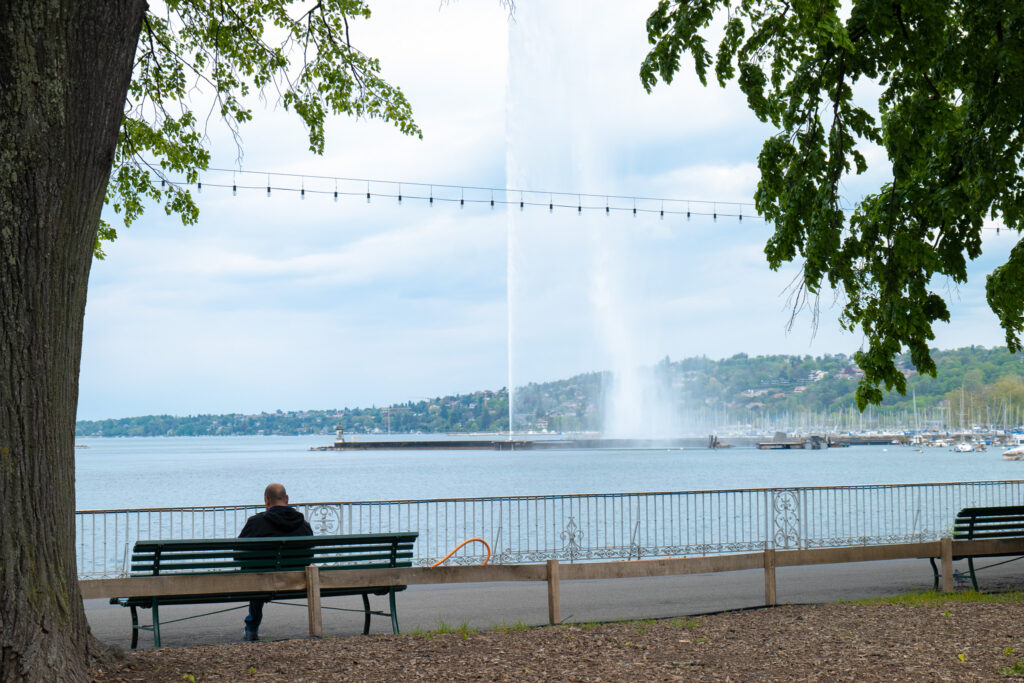 ช่วงเย็นเราเดินทางเข้าสู่ Geneva เมืองธุรกิจสุดใหญ่โตที่โอบล้อมด้วยทะเลสาบ Léman หลังจากเราเก็บของที่พักแล้วก็เลือกมาเดินช้า ๆ ตามทางริมทะเลสาบ เพื่อมาดูไฮไลต์แรกของที่นี่อย่าง Jet d’Eau de Genève น้ำพุกลางทะเลสาบที่พ่นน้ำขึ้นสู่ท้องฟ้าสูงกว่า 140 เมตร ตัวละอองน้ำที่ปลิวมาตามลมเบา ๆ บรรยากาศช่วงเย็นคือดีมาก แถมช่วงเย็นเราจะได้เห็นผู้คนคนพายเรือ นั่งริมทะเลสาบ ปั่นจักรยานผ่านไปมาด้วยฟีลดีสุด ๆ