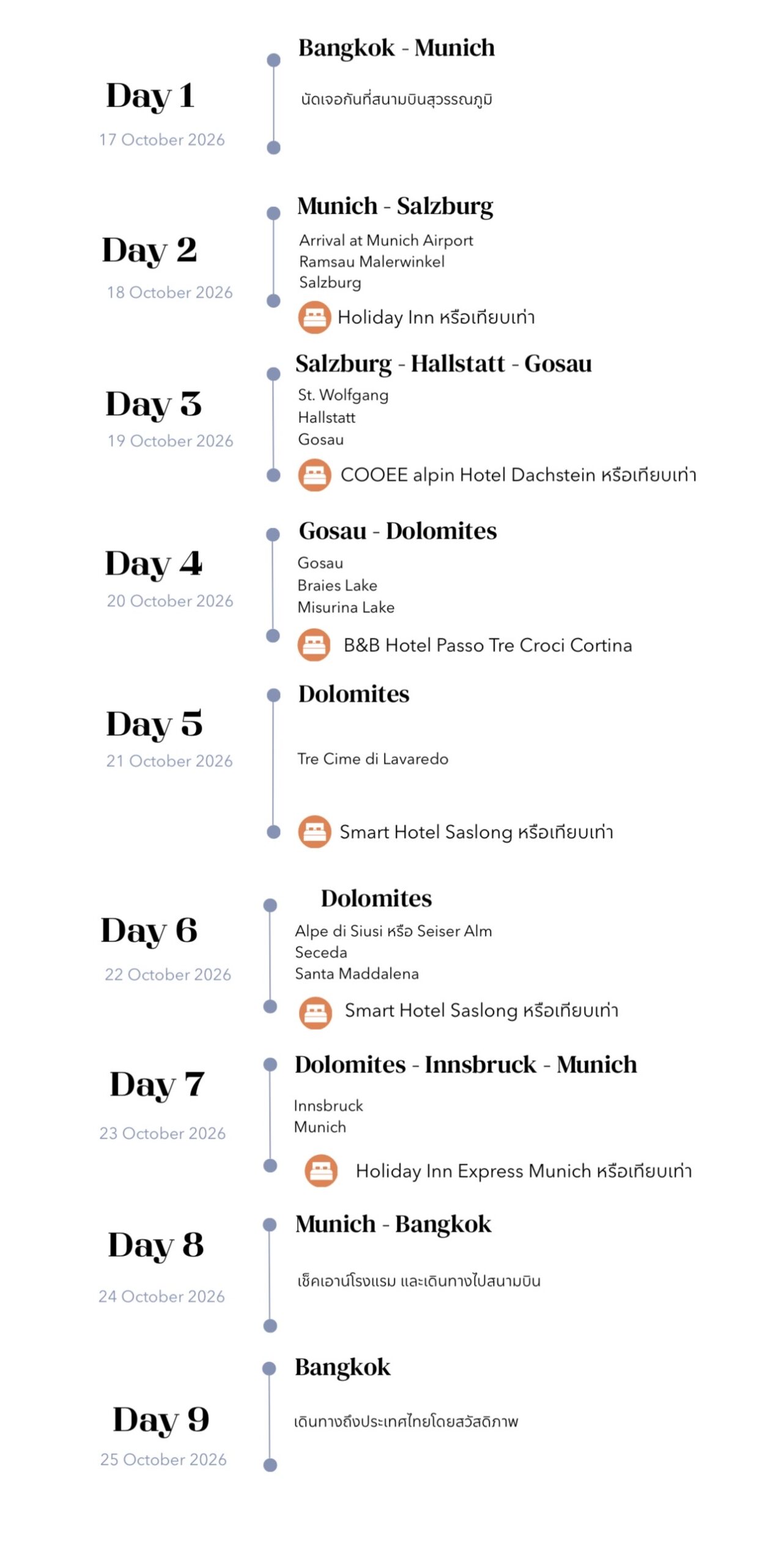 - 3.ยกเลิกการเดินทางน้อยกว่า 30 วัน เก็บค่าใช้จ่ายเต็มจํานวนจากราคาทริป